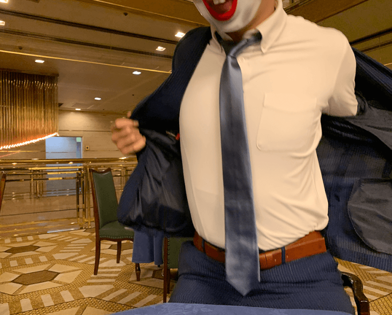 とある企業様の社員総会、キックオフMTGへの潜入取材の許可をいただきましてカッチリスーツで決めています。